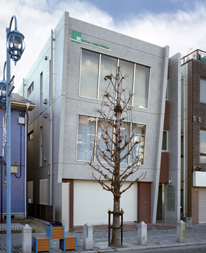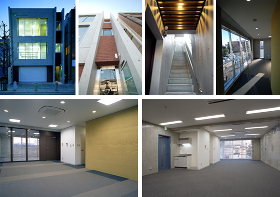 内部は、テナントビルとしてのスペース確保、フレキシビリティを兼ね備えた、小ぶりながらスパイスの効いたものに仕上がった。 |